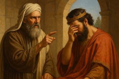 A intervenção de Natã é uma obra-prima de sabedoria pastoral e coragem profética. Em vez de uma acusação direta, que poderia ter ativado as defesas do rei, Natã usa uma parábola (2 Samuel 12:1-4). Esta estratégia genial contornou o orgulho de Davi e apelou ao seu senso de justiça, fazendo-o proferir sua própria sentença (“Digno de morte é o homem que fez isso!”). Apenas quando o coração de Davi estava exposto e sua consciência ativada, Natã desfere o golpe final: “Tu és este homem”. A confrontação divina não veio para destruir, mas para despertar, usando a verdade como um bisturi para cortar o abscesso do pecado oculto.